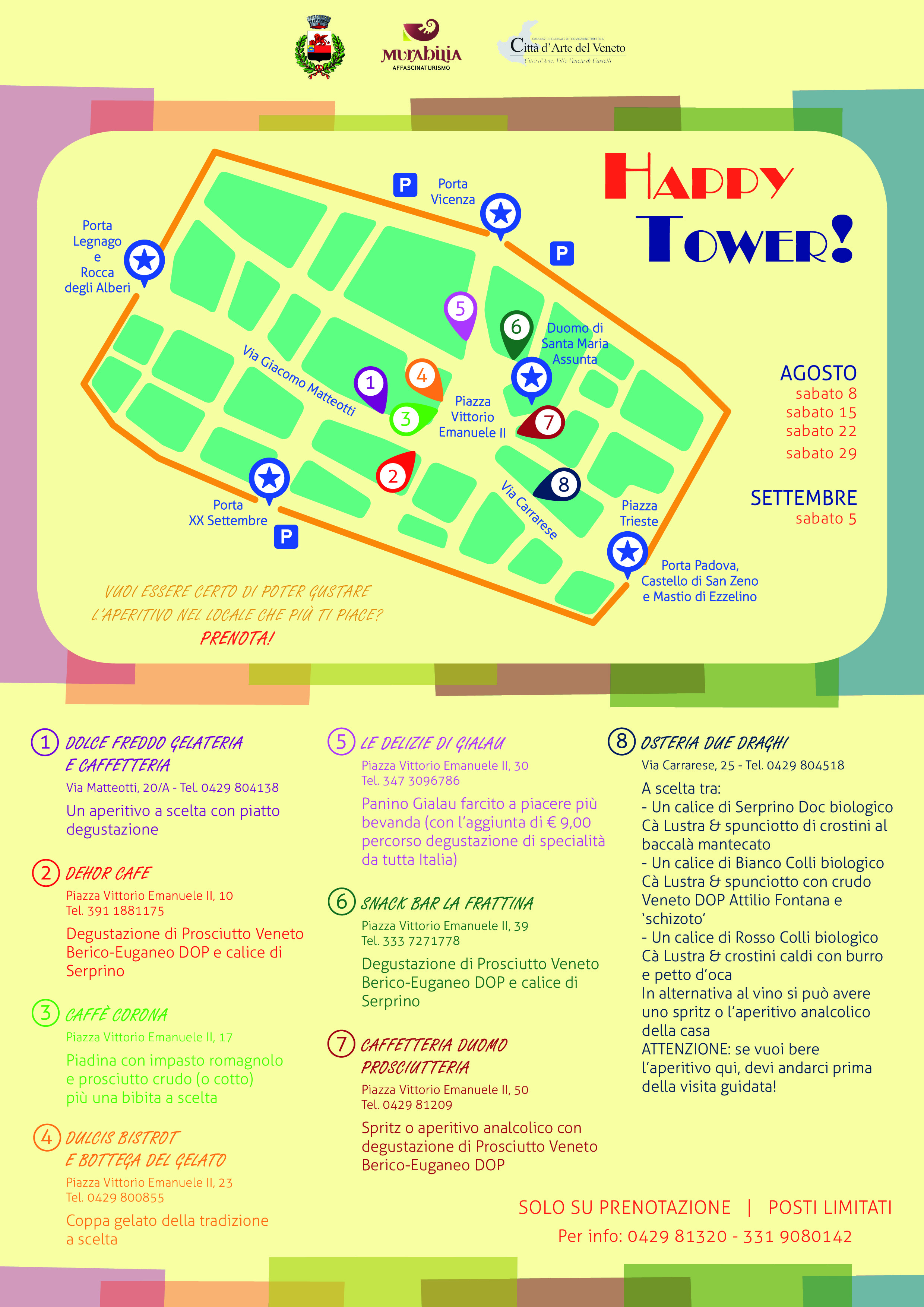 Sabato 8 agosto alle ore 19.45, gradino dopo gradino raggiungerete la terrazza panoramica, a quasi 40 metri d'altezza, per un'incantevole veduta della città murata dall'alto, nel momento più suggestivo della giornata, quello in cui il giorno lentamente lascia il posto alla notte.